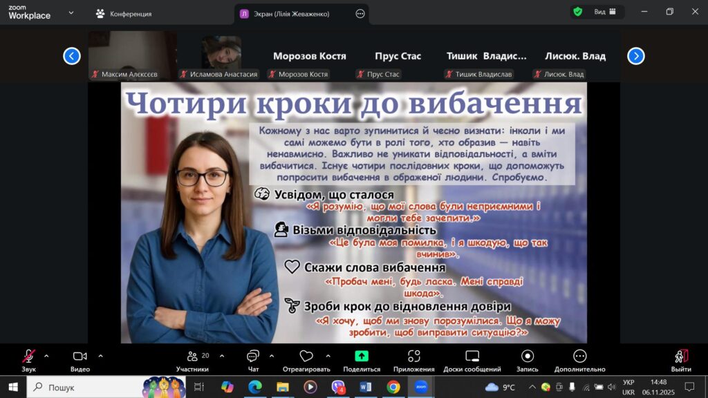 Під час заходу школярі обговорювали: поняття – булінг і насильство, їхні види; з’ясували, чому булінг – це не «жарт», а форма приниження, що залишає глибокий слід у свідомості людини.