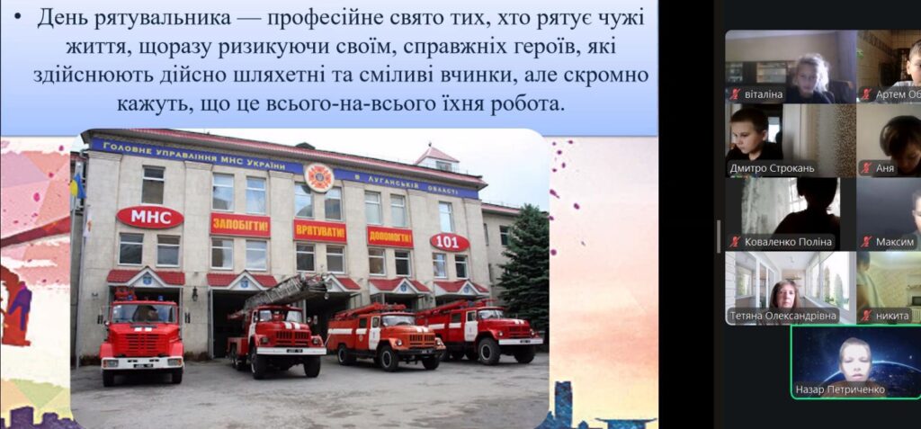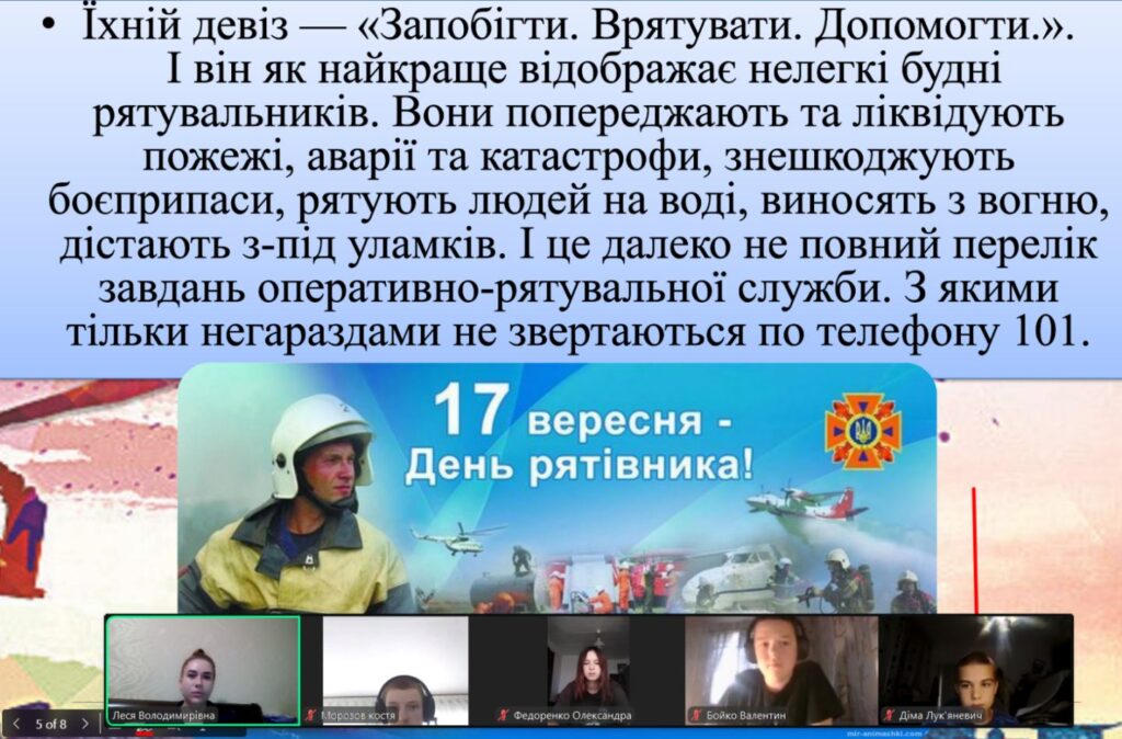 Класний керівник Лаппа О.О. розповіла учням про важливу та небезпечну роботу працівників Державної служби України з надзвичайних ситуацій, особливо в умовах війни.