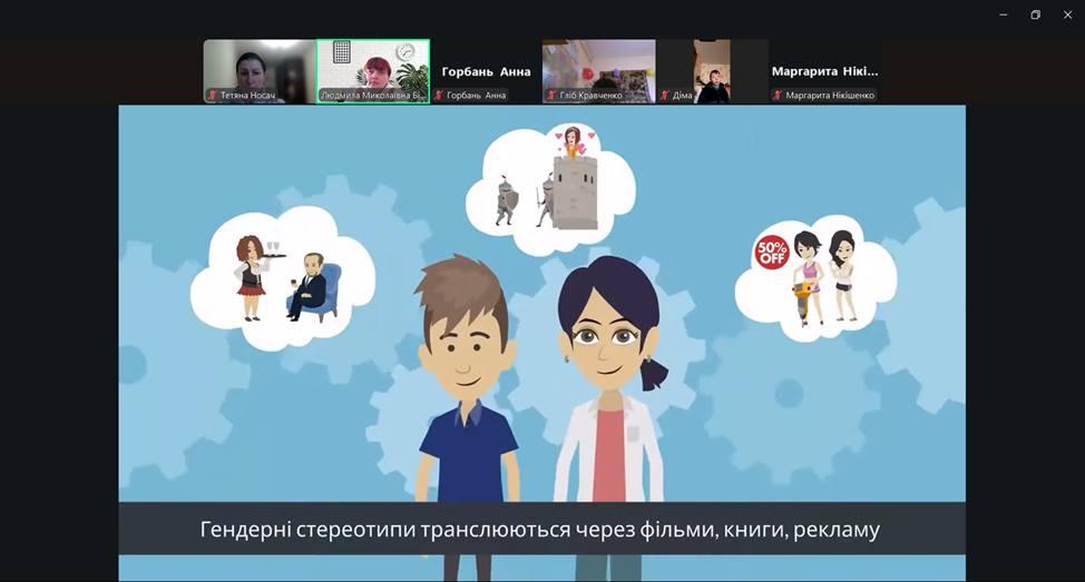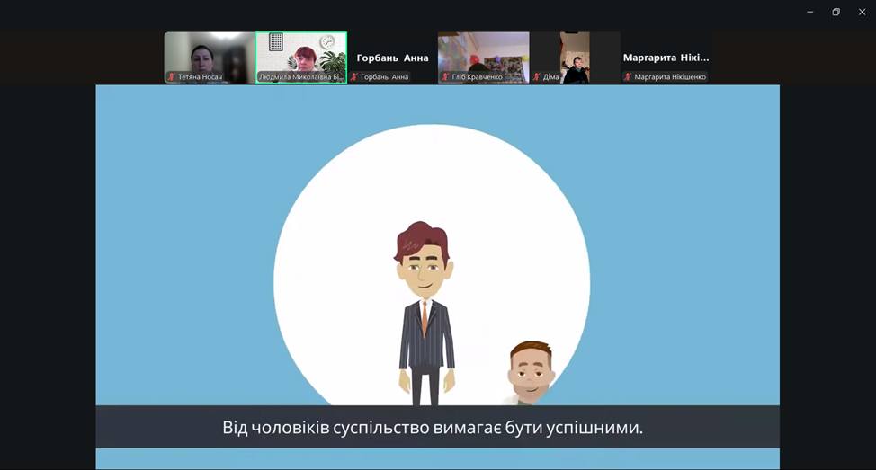 Головною частиною заходу став перегляд та обговорення пізнавального відеоролика про гендерні стереотипи. П’ятикласники разом із класним керівником розбиралися: