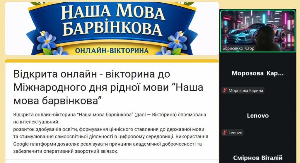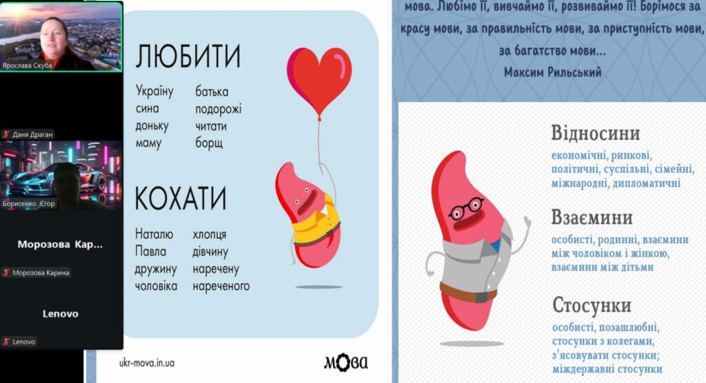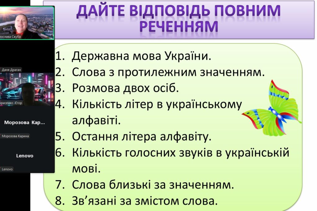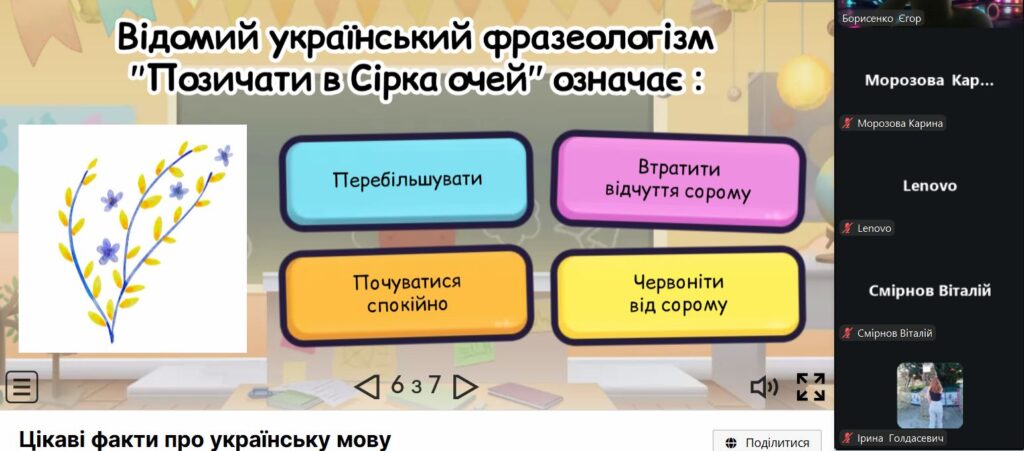 Під час заходу семикласники брали участь у мовній вікторині, виконували інтерактивні завдання, розгадували фразеологізми, добирали синоніми та антоніми, складали сенкани, а також обговорювали роль української мови в житті кожного громадянина. Учні активно висловлювали власні думки та демонстрували гарні знання з української мови.